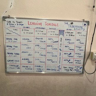 Teaching and learning schedule at The Treehouse Society (credits Kiran Kreer)